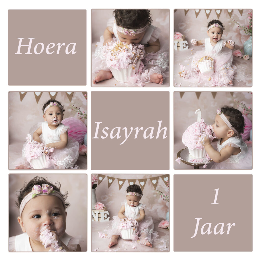 Een cakesmash is een leuk idee om de verjaardag van jullie kindje te vieren. Je kan de foto’s eventueel gebruiken voor de uitnodiging. Ik maak eerst foto’s zonder taart, zo hebben jullie ook gelijk wat portret foto’s. Daarna gaan we lekker kliederen en leg ik dit op een leuke manier vast. Indien gewenst kunnen we daarna ook nog spetteren in het badje.